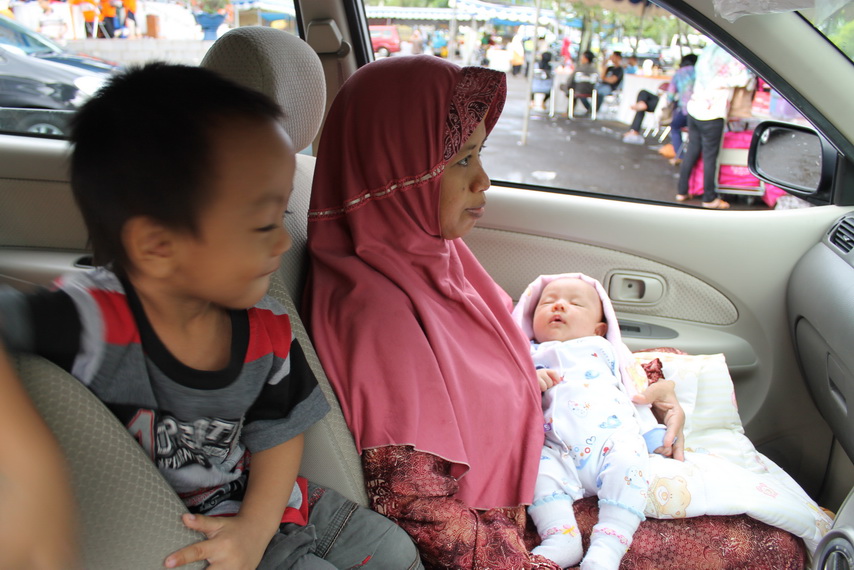 10 Guru Matematika Nalaria di PM (Usth. Lathifah Musa) ikut mengantar santri peserta lomba. Bersama dua bayinya (Muhammad dan Maryam) menunggu di mobil